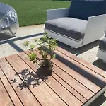 Här erbjuds utsikt över trädgården och satellit-TV för gästernas underhållning. Förutom soffa har inredningen sten eldstad. I badrummet finns en bidé, en duschkabin och ett badkar samt hårtorkar och badlakan.